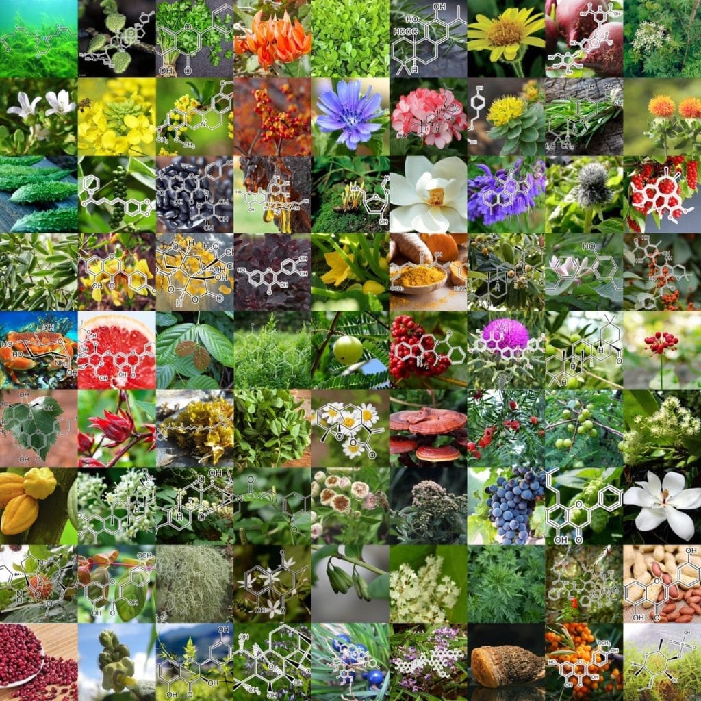 2-deoxy-d-glucose (2-DG) • 8-Prenylnaringenin • Albatrellus confluens • Alisol B isolated from Alisma orientale • Allicin • Amorphophallus konjac tubor • Anthocyanin extract from black soybean (Glycine max L.) • Apigenin • Apios americana Medik flowers extract • Areca nut • Artemisia vulgaris (mugwort) • Azuki bean (Vigna angularis) extract • Bacopa monnieri • Benzoin gum (Styrax benzoin) • Berberine • Betanin‐Enriched Red Beetroot (Beta vulgaris L.) • Bitter Melon Extract Saponins30% • Brunfelsia grandiflora • Butea monosperma (Lam.) flowers • Buxus sempervirens • Carnosic acid (CA), a polyphenolic diterpene isolated from Rosemary (Rosemarinus officinalis) • Carnosol • Catechin • Celastrol (tripterine) isolated from the root extracts of Tripterygium wilfordii (Thunder god vine) • Celastrus orbiculatus • Cepharanthine (CEP) a biscoclaurine alkaloid extracted from Stephania cepharantha • Chaihu (Radix bupleuri), • Chebulagic acid from Terminalia chebula • Chuan xiong (Rhizoma chuanxiong) • Cichorium intybus Linn. Extract • Clionamine B Isolated from Cliona celata • convallatoxin isolated from Antiaris toxicaria, • Cordycepin • Corynoxine B , isolated from Uncaria rhynchophylla (Miq.) Jacks (Gouteng in Chinese), • Cucurbita moschata, variety “long of Naples,” • Curcumin • Dandelion root • Dihydromyricetin (Ampelopsin) • Dimethyl cardamonin isolated from Syzygium samarangense • Dioscin • Docosahexaenoic acid (DHA) • Donglingcao (Rabdosia rubesens), • EGb 761 from Ginkgo biloba extract • Emblica officinalis extract • Evodiamine, an alkaloid isolated from Evodia rutaecarpa • Fenugreek • Fisetin • Fragaria vesca leaves • Fucoidan • Fucoxanthin from Laminaria japonica • Galangin • Ganoderma lucidum • Genistein • Ginger (Zingiber officinale Roscoe) • Gingerol • Ginsenoside 20 (S)-Rg3 • Glucosamine • Glutathione • Gynura formosana Kitam. leaves • Hibiscus sabdariffa Leaf • Honokiol from Magnolia officinalis • Hou po (Cortex magnoliae officinalis) • Hu Zhang (Rhizoma polygoni cuspidati), • Huaier extract • Isorhamnetin from sea buckthorn (Hippophae rhamnoides L.) • Isorhynchophylline (IsoRhy) from Uncaria rhynchophylla • Kaempferol • Luteolin • Matrine • Mung bean (Vigna Radiata) • Muscadine grape skin extract • Myrtillin • Naringin • oblongifolin C from Garcinia yunnanensis Hu • Old Man’s Beard (Usnea barbata) • Oleanolic acid • Onjisaponin B derived from Radix Polygalae • Oridonin • Paclitaxel from pacific yew tree • Panax ginseng • Parthenolide from Feverfew • Phellinus Linteus Extract • Pimenta dioica berries (Allspice) • Piperine • Piperlongumine (PL), from fruit of Long pepper (Piper longum) • Pluchea indica root extract • Plumbagin from Plumbago zeylanica L, Juglans regia, J. cinerea, and J. nigra • Polygonatum cyrtonema Hua • Quercetin • Resveratrol • Rhodiola rosea • Rottlerin from Mallotus philippinensis • Safflower extract • Salidroside • Sarsaparilla (Smilax glabra rhizome) extract • Saussurea lappa extract • Schisandrin A. (Schisandra chinensis fructus) • Silibinin • Tanshinone IIA from the root of Salvia miltiorrhiza Bunge, • Theobroma cacao L • Triptolide (TPL) from Tripterygium wilfordii, • Ursolic acid • Vitamin D3 • Vitamin K2 (MK4) • Vitexin • Wogonin from Scutellaria baicalensis